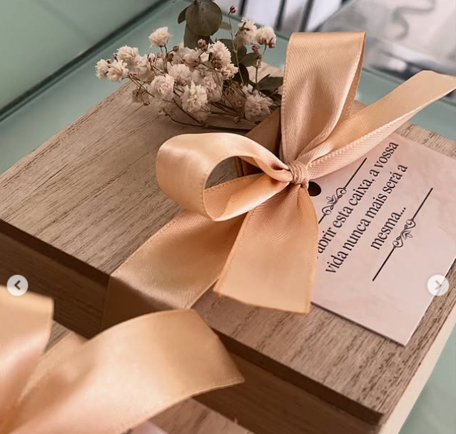 A acompanhar, a caixa de madeira natural oferece um toque elegante, rústico e intemporal, transformando o presente numa peça memorável e cheia de charme. No exterior, encontra-se um cartão com frase especial, pensado para despertar curiosidade e emoção antes da revelação.