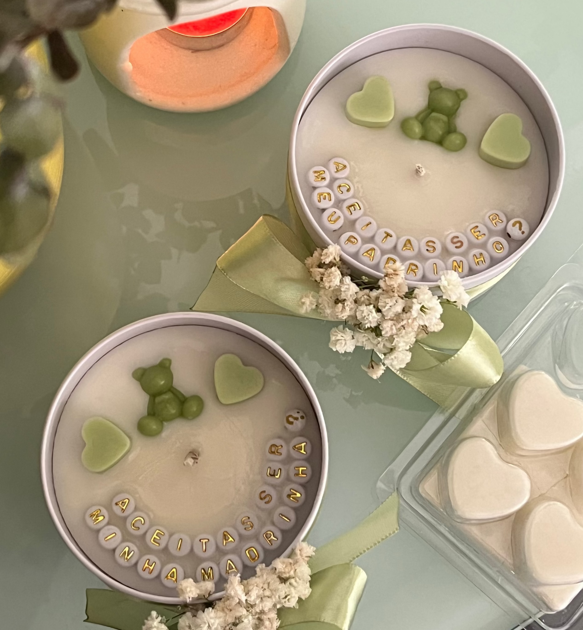 Surpreenda os familiares e amigos com a nossa vela artesanal de 240ml — uma forma carinhosa e única de dar esta notícia especial.