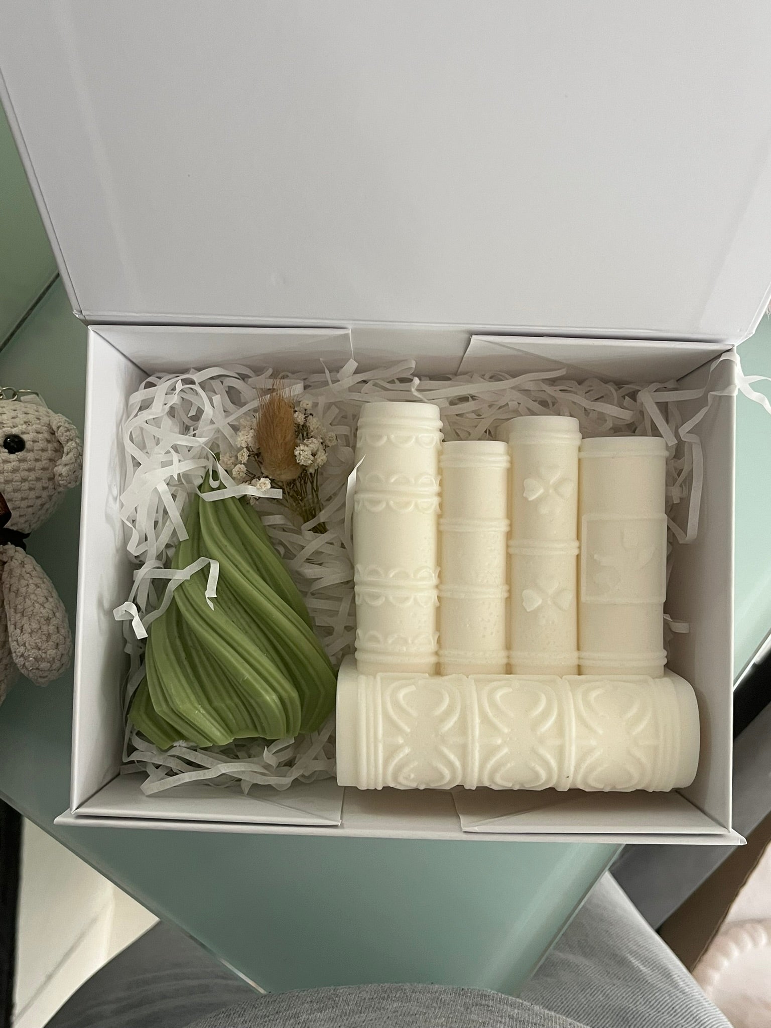 Celebre o Natal com uma oferta que combina elegância, aconchego e criatividade artesanal. A Box Presente de Natal une duas das velas mais encantadoras da coleção: a Vela Pinheiro Twist, inspirada na natureza e no espírito natalício, e a Vela Decorativa Livros, símbolo de tranquilidade, introspeção e momentos de pausa.