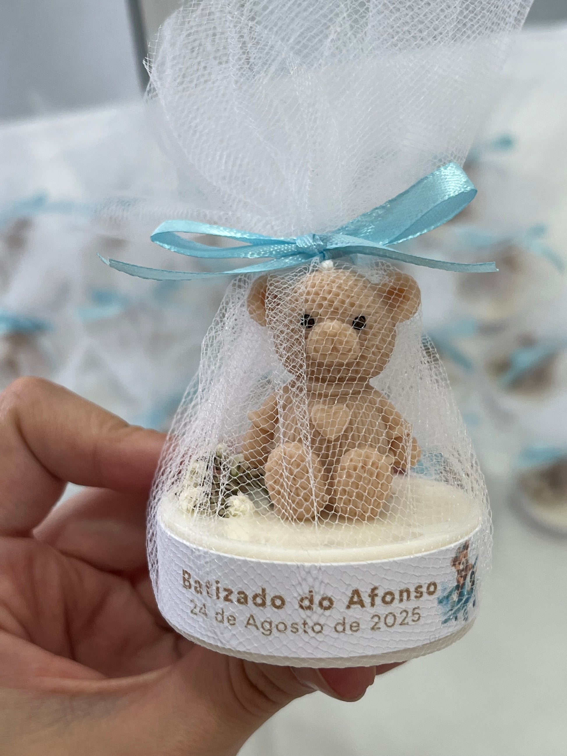 O nosso Ursinho Vela com Base e tule é uma peça encantadora e cheia de significado, perfeita para batizados, baby showers e aniversários de bebé.