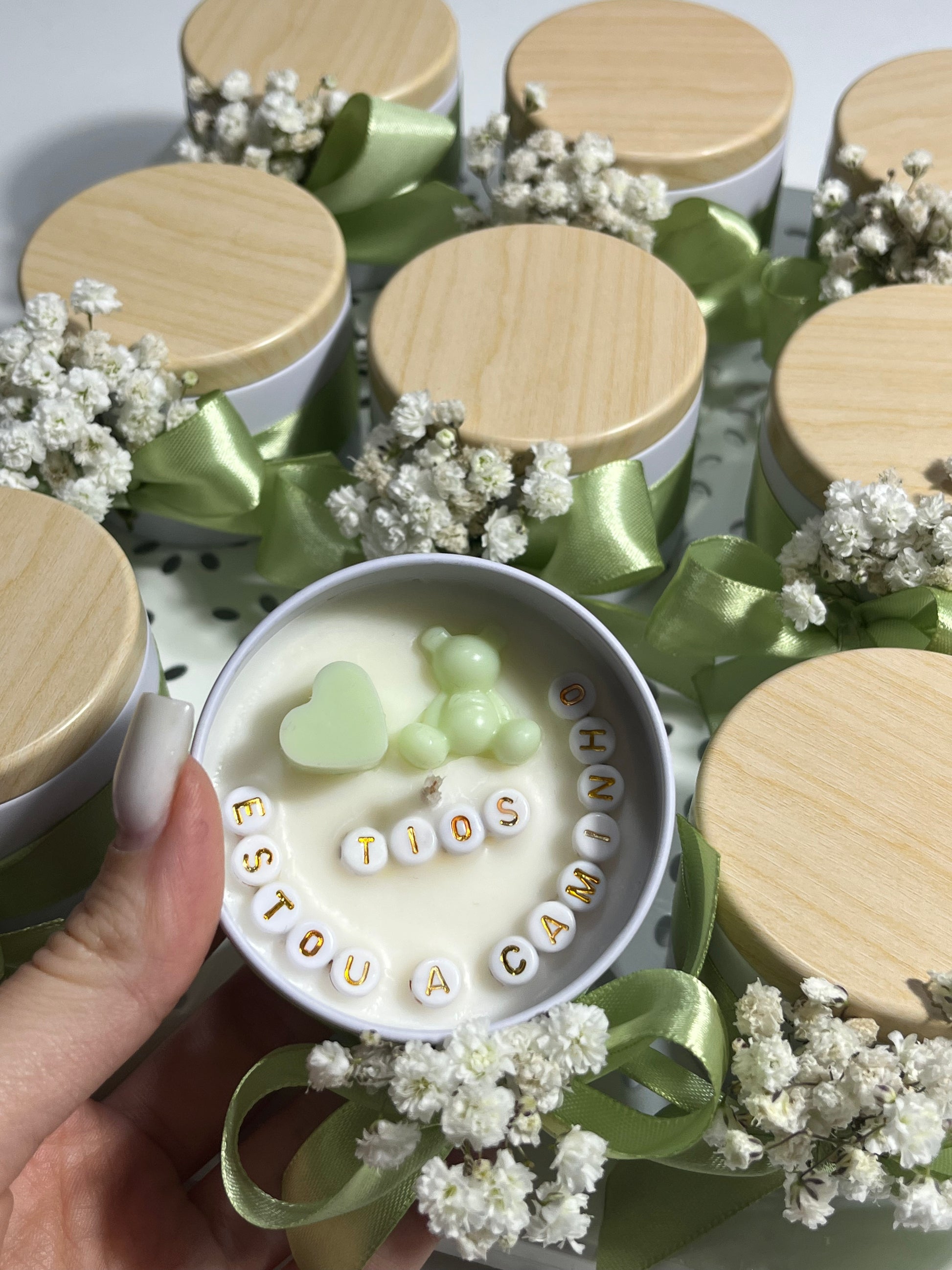 Surpreenda os futuros familiares com a nossa vela artesanal de 120ml, uma forma carinhosa e única de partilhar esta notícia tão especial.
